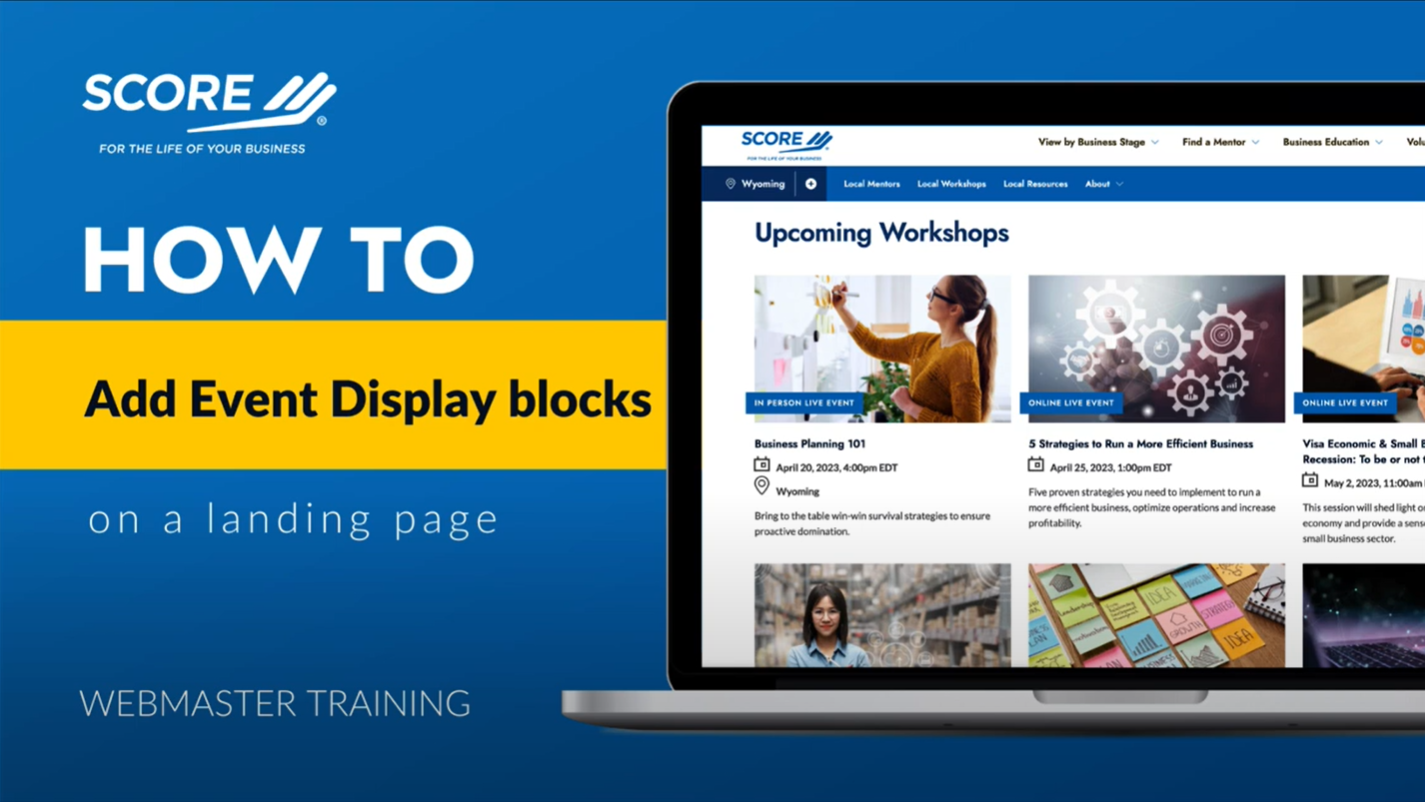 You can watch the following instructional video to learn how to add event display blocks on a landing page: Event Display Block Instructions.