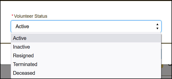 Emeritus (not a status type; field is found in the volunteer profile page) |