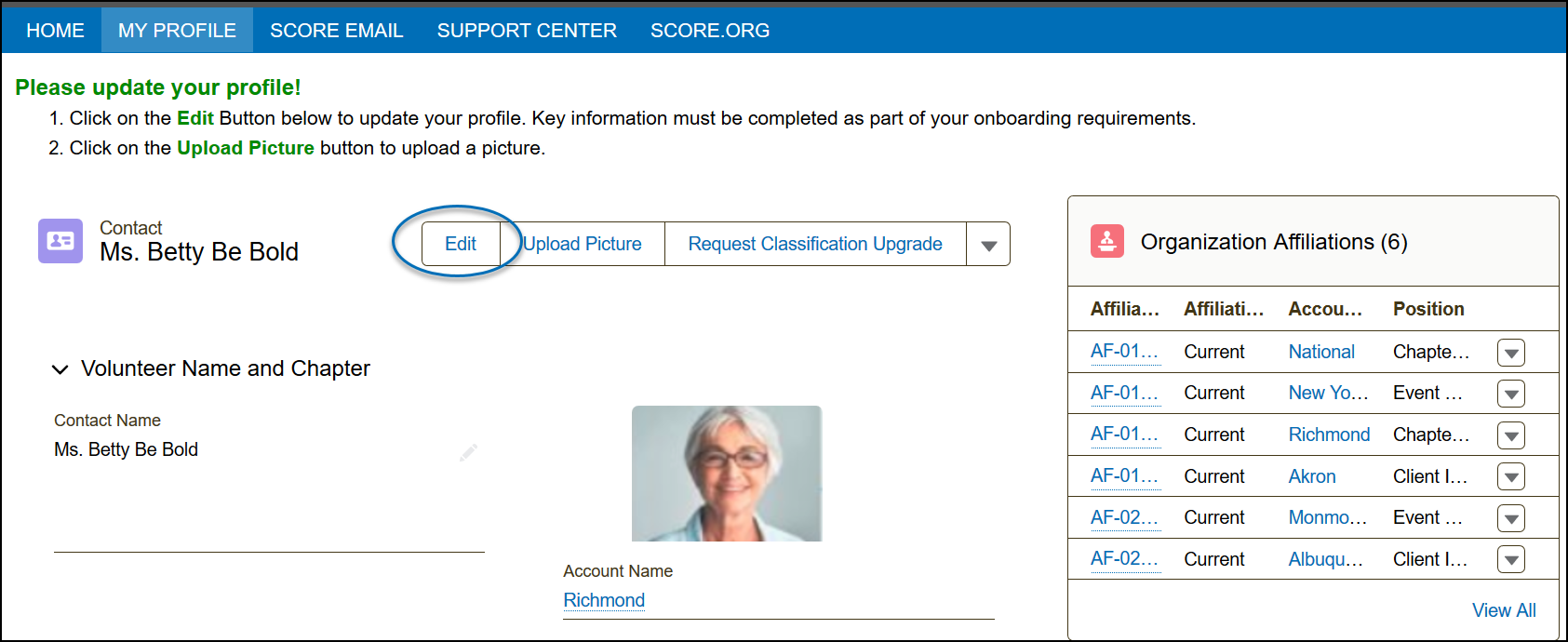 1.) From the homepage, navigate to My Profile via the top navigation bar.