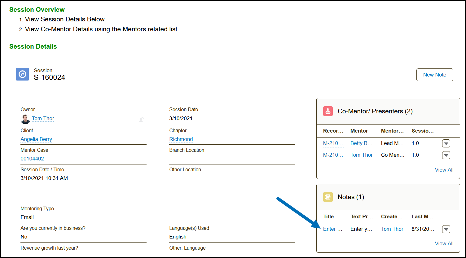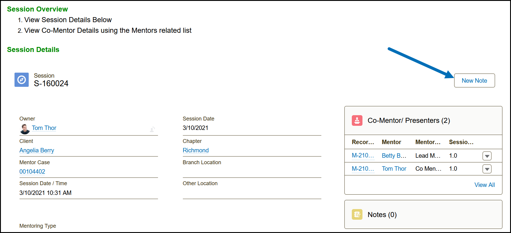 3) Click the New Note button on the Session Details page.