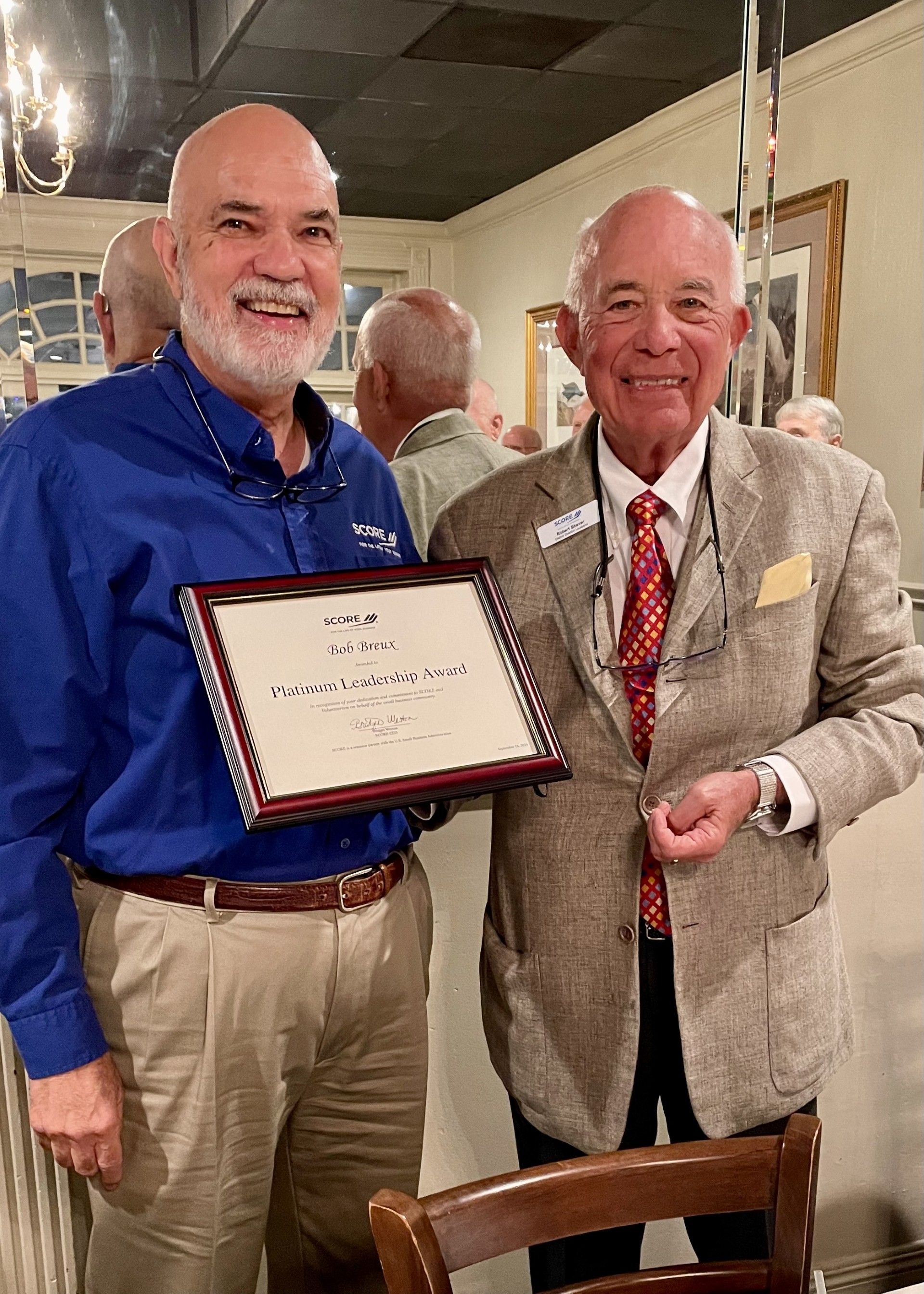 SCORE Baton Rouge Area recently hosted an extra special recognition event. At this event, they honored long-term SCORE mentor Bob Breaux. Bob was presented with the Platinum Leadership Award, the highest honor a SCORE volunteer can be nominated for by their peers. In January, Bob will be celebrating 30 years of meritorious service. SCORE CEO, Bridget Weston, also honored Bob by writing him a congratulatory note. Thank you and congratulations Bob!