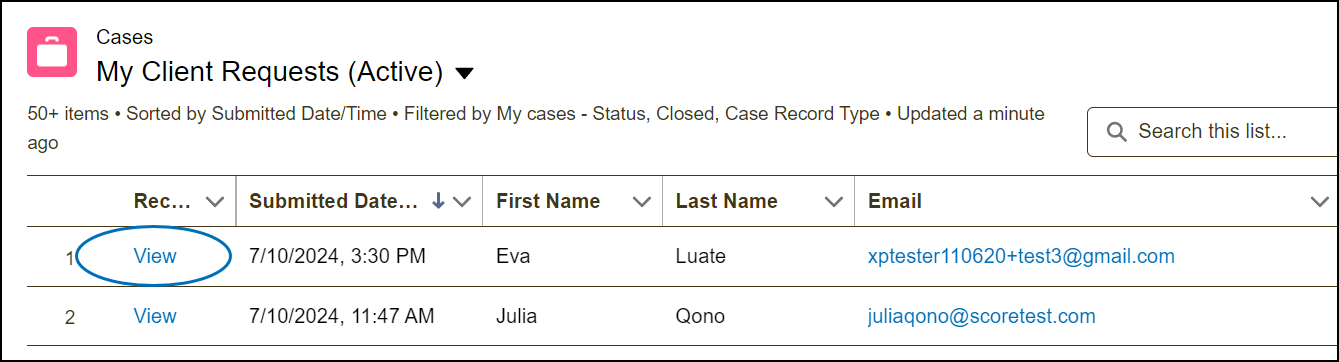 Email messages sent out from the Mentoring Request Case are also viewable and saved under the "Activity History" related list.