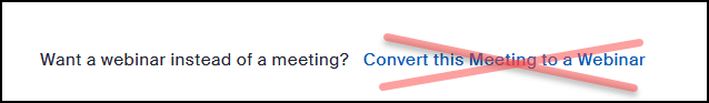 - you need to convert a meeting to a webinar in Zoom, cancel the current event and create a new one