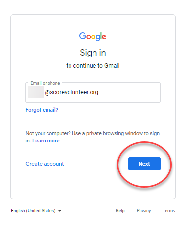 - Then, log with your SCORE Email (@scorevolunteer.org) and Password.