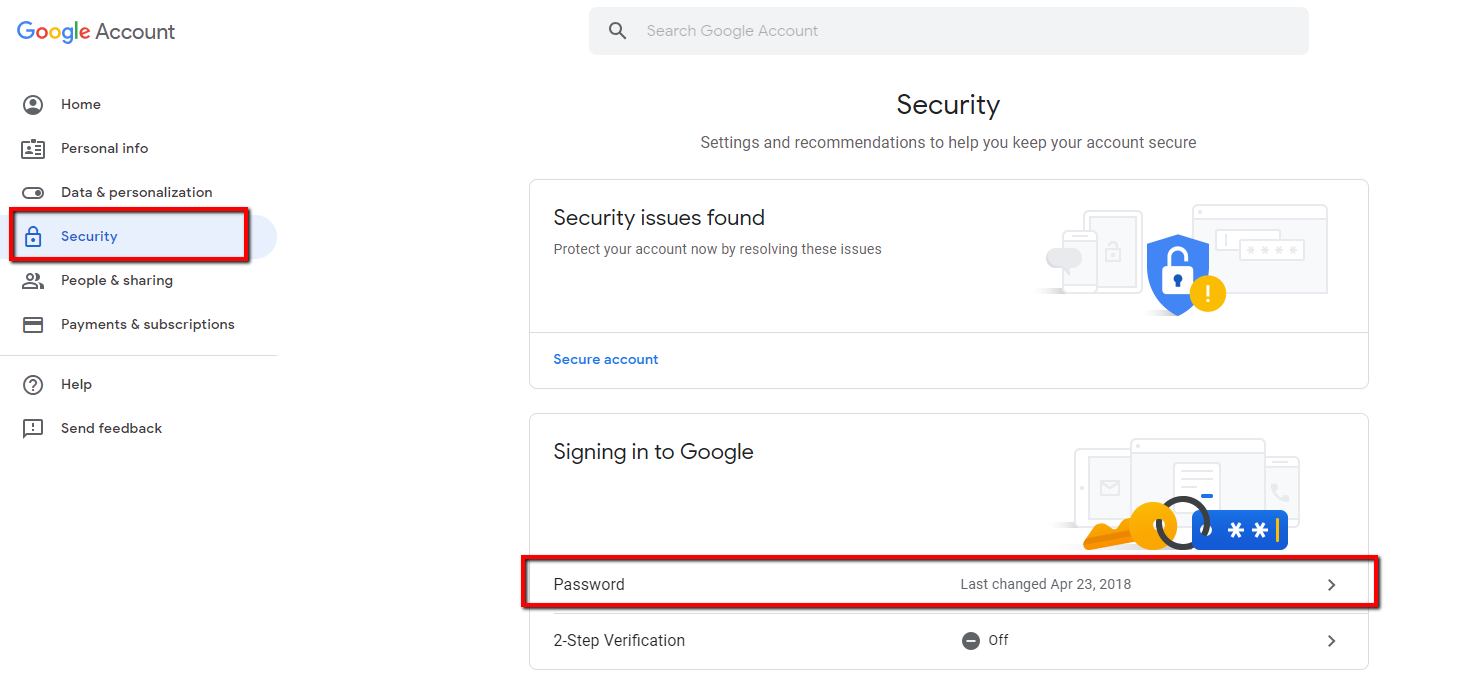 - Click Security from the left panel, select 'Password' (it will require you to enter your username and password again).