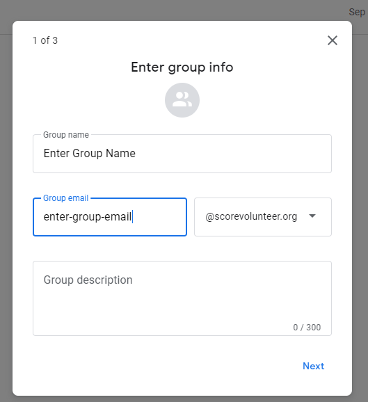 - Enter Group Members by their @scorevolunteer.org email, and/or full name to find