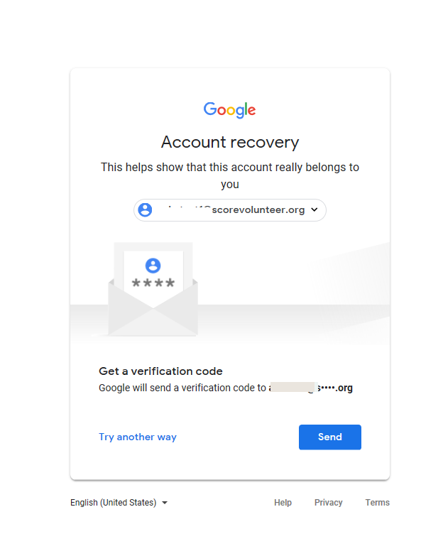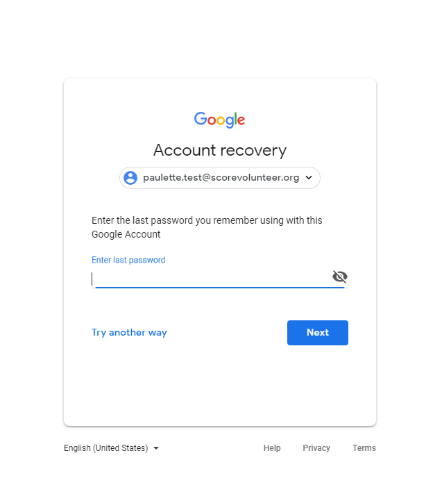 If you currently have set up a recovery email or phone, please continue to follow the steps below to reset your scorevolunteer.org email account password