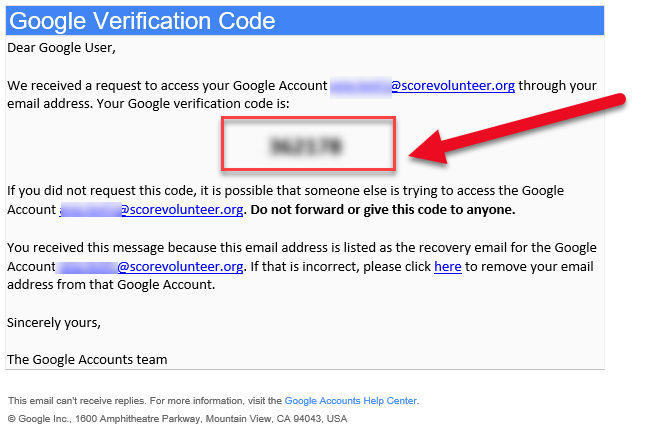 - Enter the code sent to your recovery email, an example of a Recovery Email Message including code is below: